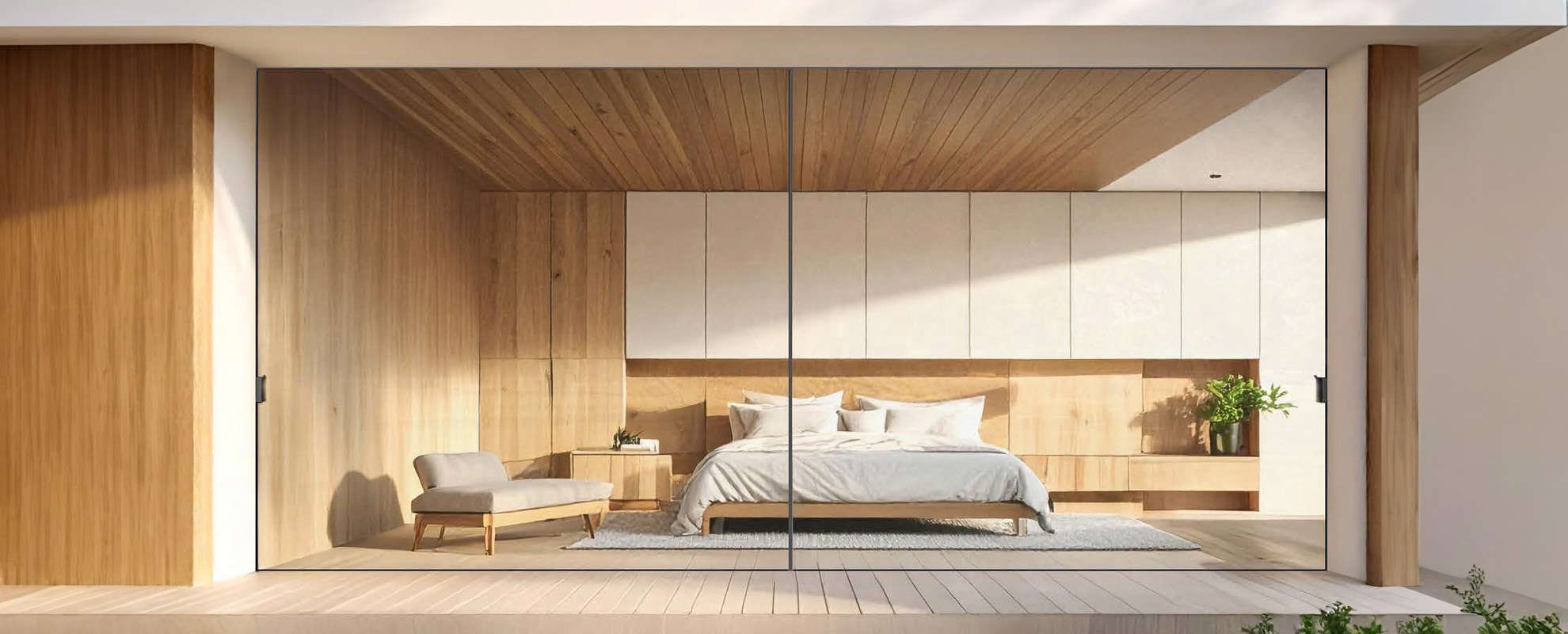 Even when closed, the design is focused on the view. Systems like this use very slim frames, with a minimal central junction that can be as narrow as around 25mm, so your eye is drawn to the glass rather than the structure.