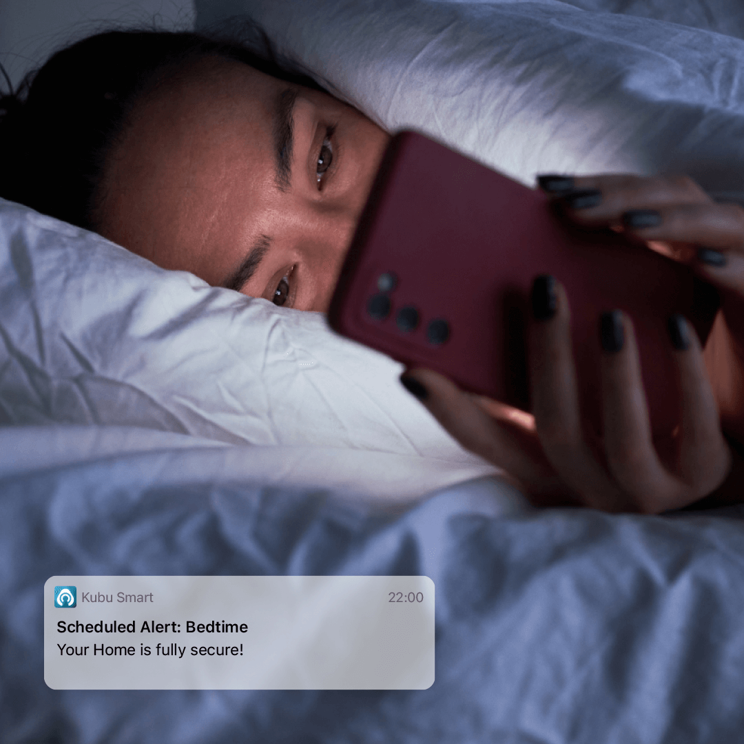 Kubu’s smart alert system doesn’t just notify you of security issues — it’s also designed for everyday comfort and convenience. Set scheduled reminders, receive status updates before bedtime, or even get alerts tied to weather conditions and energy use via the Kubu app.